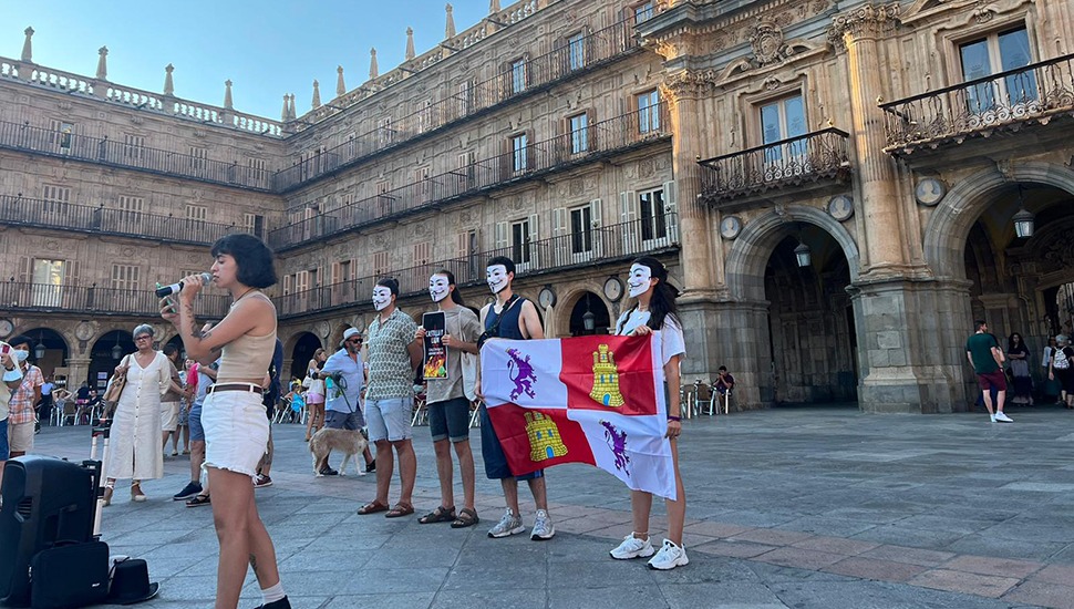 Alrededor de un centenar de personas se concentra en Salamanca al grito de "se quema Castilla y tú sigues en tu silla"