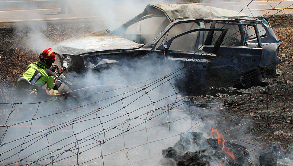 Según informó a Ical el Servicio de Emergencias 1-1-2 de Castilla y León, el turismo sufrió una salida de vía, volcó y dio varias vueltas de campana antes de aterrizar de pie. Las primeras llamadas alertaron, de hecho, de que salía humo del coche y habían prendido ya las primeras llamas cuando los tres ocupantes estaban alejados.