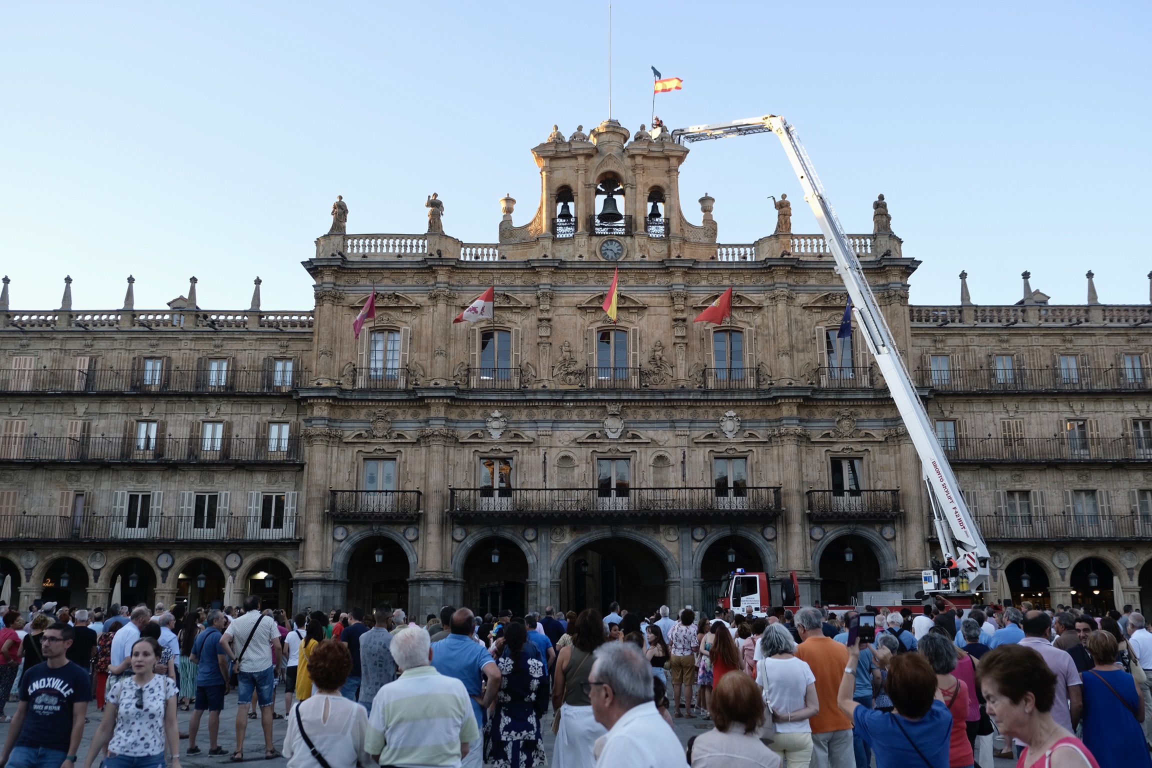 Finalmente, este 2022 no se han lanzado nueve cohetes al aire tal y como solía ocurrir en ediciones anteriores. A buen seguro, el riesgo de incendios y el mal recuerdo del pasado 2019 cuando dos personas resultaron heridas tras el impacto de uno de ellos en una terraza del ágora charra, obligan a no llevar a cabo este habitual.