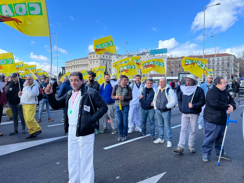 El sector apícola se ha manifestación en la mañana de este 9 de marzo por las calles de Madrid, reuniendo a trabajadores de todos los puntos de España. Entre sus reivindicaciones; "promover un cambio en la normativa del etiquetado de la miel que garantice que la producción de los apicultores españoles pueda llegar al mercado" con las mismas oportunidades que las mieles de terceros países.