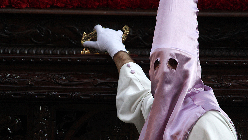 Las cuatro piezas en procesión narran cronológicamente la Semana Santa y auguran lo que se avecina: el prendimiento de Jesús en el huerto de los olivos, la comparecencia ante Pilatos, la agonía en la cruz y el padecimiento de la virgen de los Dolores, una talla con detalles en oro que muestra a María. Las cuatro desfilan escoltadas por los hermanos de la Seráfica ataviados con su llamativo capirote morado.