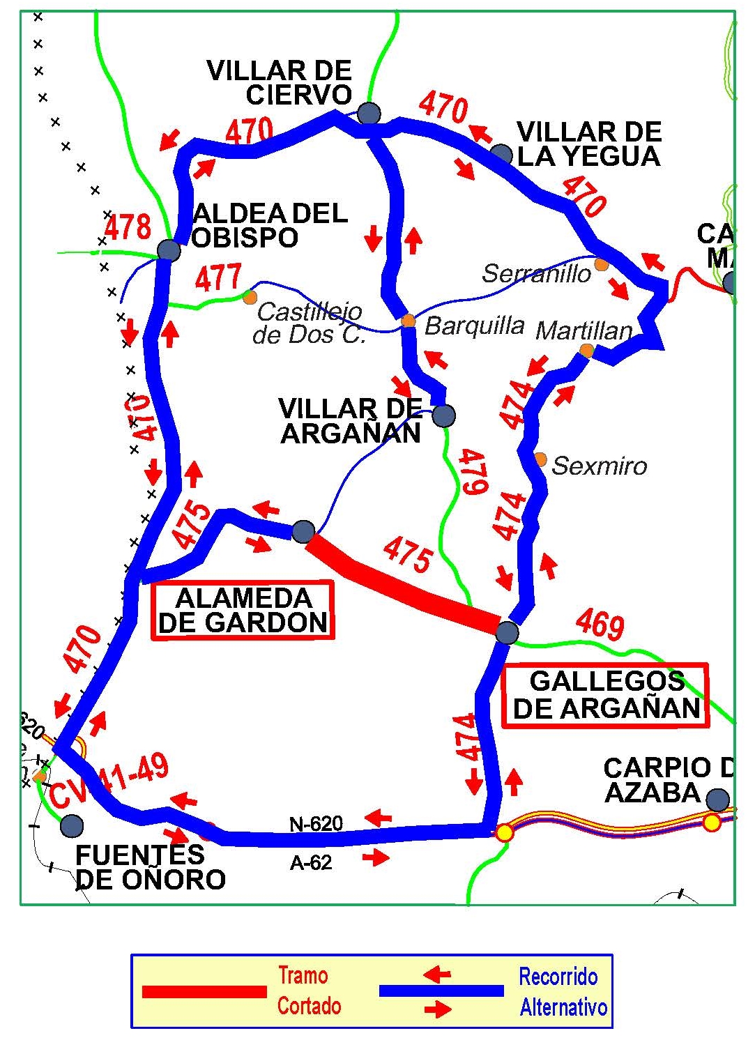 Para los desplazamientos entre ambos puntos se recomienda el itinerario alternativo a través N-620 y Fuentes de Oñoro.