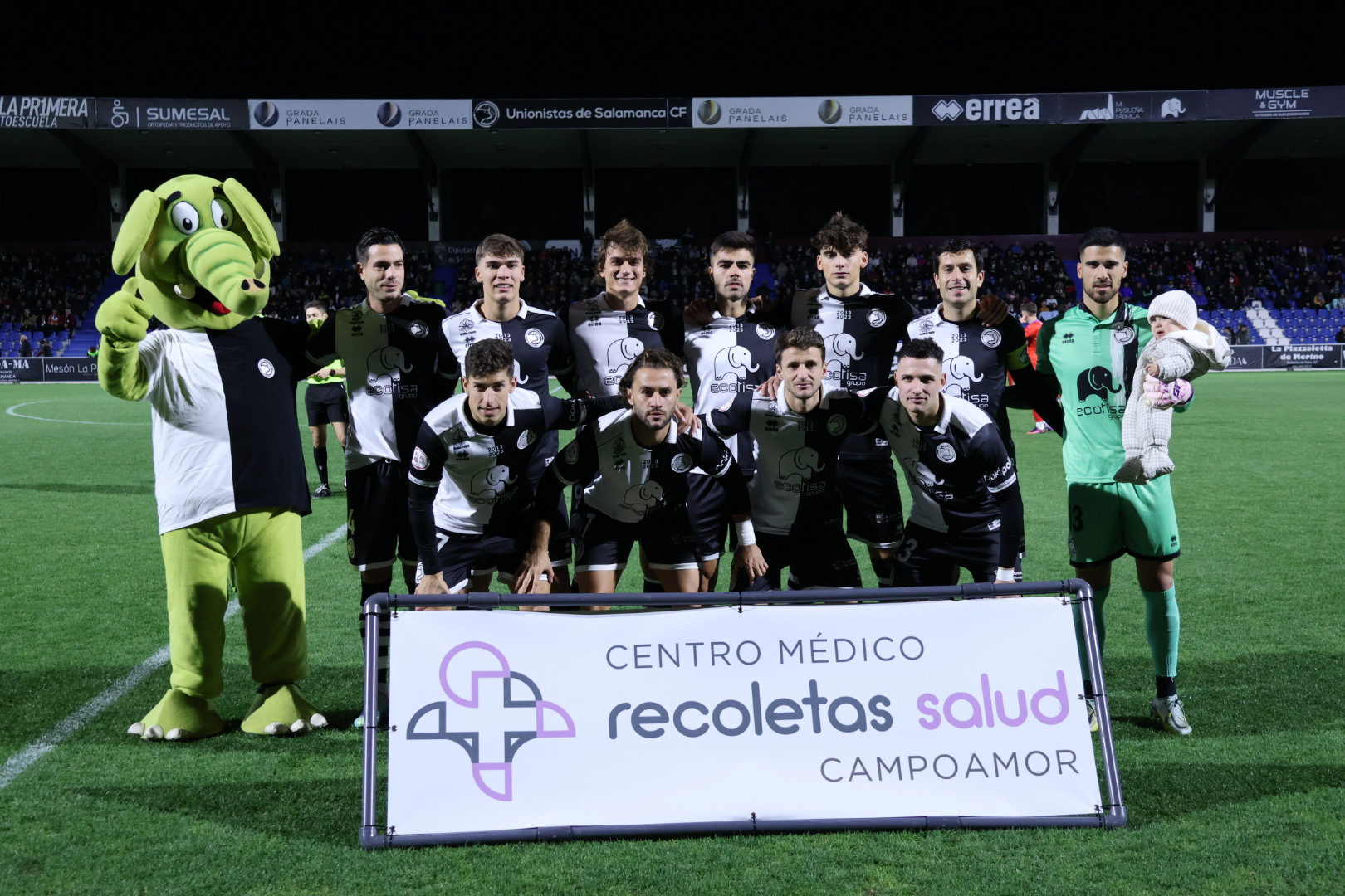 Se podrían diferenciar hasta tres partes en la primera mitad. Primera para los charros, segunda para los visitantes y una tercera en la que se bajó el ritmo y el partido fue de tú a tú, con ocasiones para ambos. El dorsal número 9 del equipo blanquinegro, hizo suyo el 'yo me lo guiso yo me lo como', lanzando al palo corto, forzando la intervención de Lucas. Rozando el descanso, dos más: Falta peligrosa, que Ekatiz envió al segundo palo, demasiado pasada y directamente fuera. Después la tuvo Losada: Pase en largo de Nespral a la carrera del delantero, que de bolea la mandó a la grada. Tenía tiempo el delantero de Unionistas para bajarla, pero optó por la opción más arriesgada. No le salió bien. Y el resultado llegó en empate al descanso.