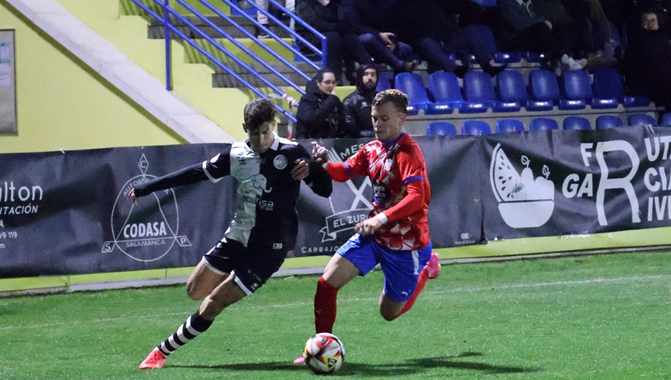 Había que hacer buenas las sensaciones logradas en el encuentro de Copa del Rey ante el Gernika. Ganar en el Reina Sofía, sí o sí, por clasificación, por moral, por tu afición. Y dentro de ese intento continuidad, Dani Ponz incorporó a Cacharrón en el once inicial (no era titular en liga desde el encuentro ante el CD Lugo), dejando a un goleado Iván Martínez, con siete goles en tres jornadas, en el banquillos. Junto a él, podría decirse once de gala en el conjunto charro: Erik Ruiz y Ramiro de centrales, los laterales para Ekaitz y Carlos Giménez, con Nespral y Javi Villar en el centro del campo. Las bandas fueron ocupadas en esta ocasión por Juan Serrano y Rastrojo, posicionando a Losada y Slavy como referencia arriba.