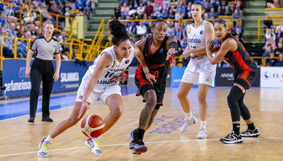 Con tranquilidad se lo tomaba el equipo salmantino que atacaba con las ideas muy claras y con valentía siempre mirando aro y atrás trabajaba bien en los 1x1 invitando a las interiores polacas a tiros alejados.
