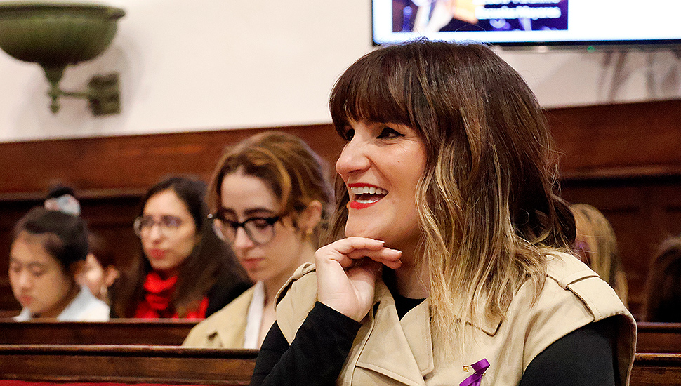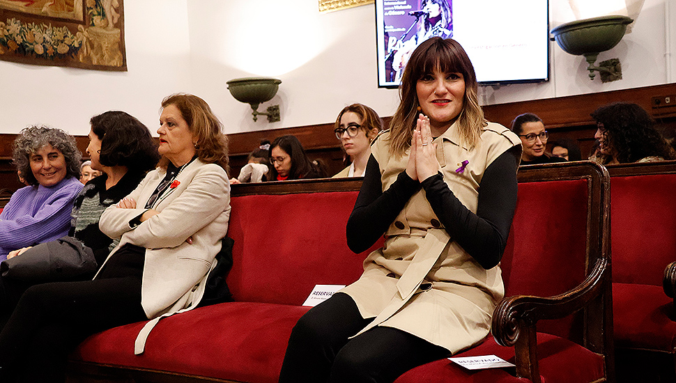 El Paraninfo de la Universidad de Salamanca ha reflejado en la mañana de este jueves, 23 de noviembre, un sinfín de emociones. Con los pelos de punta por la música, por el mensaje y por el testimonio, decenas de hombres y mujeres se han congregado en torno a Marta del Pozo, directora del Centro de Investigación de Género de la USAL, y Rozalén, cantante y compositora, creadora de uno de los himnos más conocidos de nuestro país contra la violencia machista, 'La Puerta Violeta'.