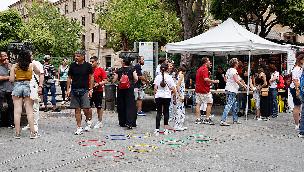 El Ayuntamiento de Salamanca se ha sumado hoy a la celebración del Día Internacional de la Lucha contra el Uso Indebido y el Tráfico Ilícito de Drogas junto con las asociaciones, entidades y agentes de la ciudad que trabajan en el ámbito de la prevención de adicciones con la instalación de una carpa interactiva en la plaza de los Bandos con la finalidad de concienciar a la población, especialmente a la más joven, sobre los riesgos y las consecuencias que entraña su consumo.