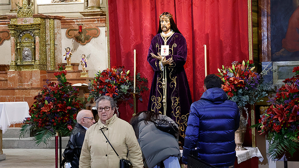 Hoy, como cada primer viernes de marzo, la parroquia de San Pablo de Salamanca abre sus puertas de par en par para acoger a miles de devotos que, con fervor y esperanza, acuden a venerar la imagen de Nuestro Padre Jesús Rescatado en su tradicional besapiés, en total unos 9.000. Esta jornada, profundamente arraigada en el corazón de los salmantinos, refleja una devoción que trasciende generaciones y fronteras.