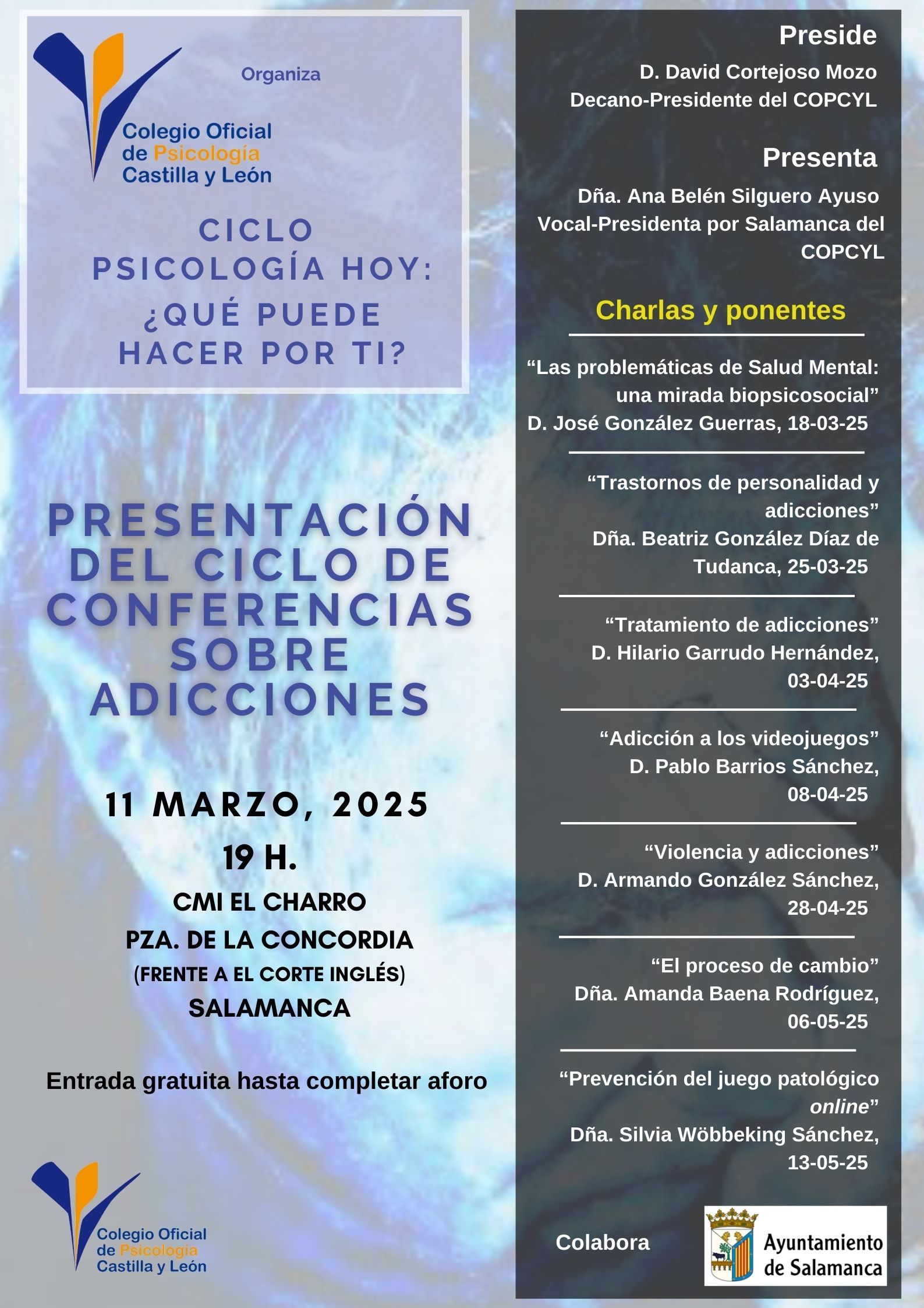 El Colegio de Psicología presenta en Salamanca un ciclo de conferencias sobre adicciones