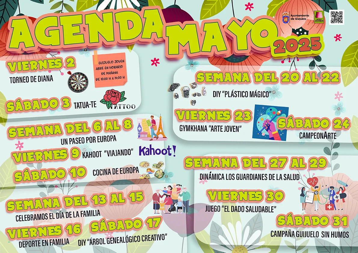 Guijuelo arranca mayo con una programación dinámica y variada para sus jóvenes, con una agenda que combina deporte, cultura, ocio y concienciación social. Las actividades comenzarán este mismo viernes con un torneo de diana y una apertura especial en horario matinal.