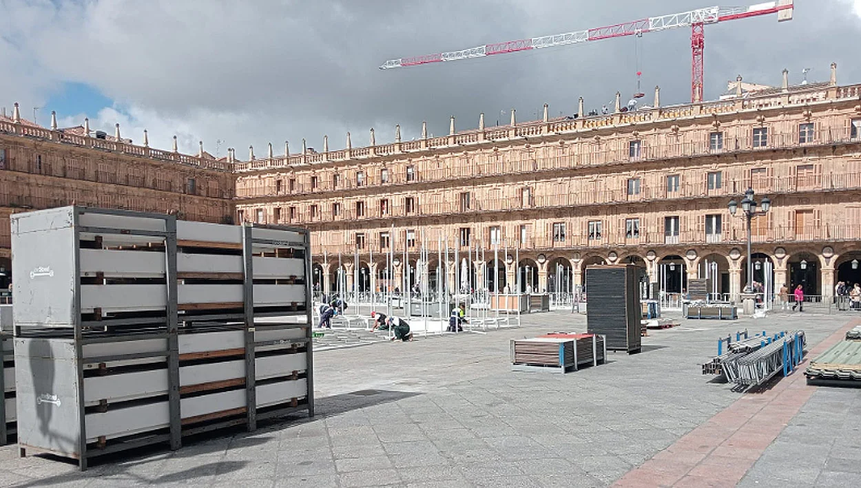 Mientras las casetas van tomando forma, Salamanca se prepara para dejar que la literatura vuelva a tomar su corazón: la Plaza Mayor.