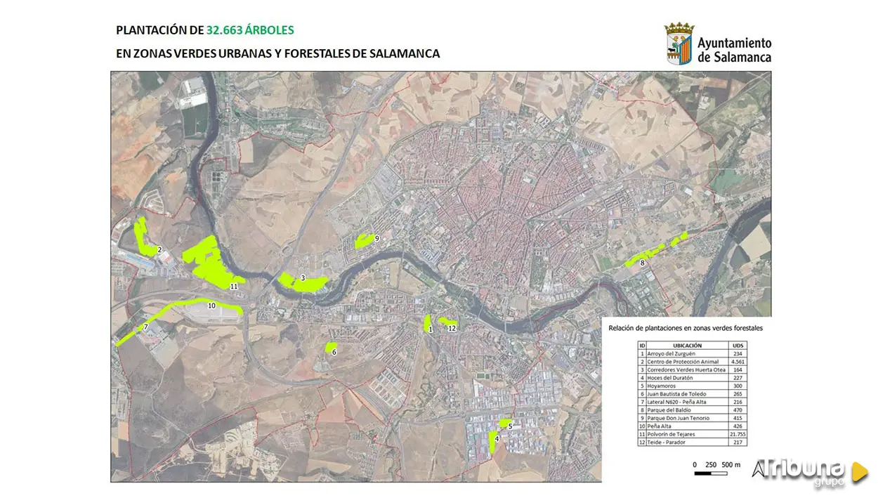 Cuando termine la plantación, Salamanca sumará 127.000 árboles en zonas verdes municipales, a los que habría que añadir otros 50.000 asentados en las riberas del Tormes y en espacios privados. En palabras de Carbayo, habrá "más de un árbol por vecino", una ratio con la que "muy pocas ciudades" pueden competir, dado el tamaño de Salamanca.