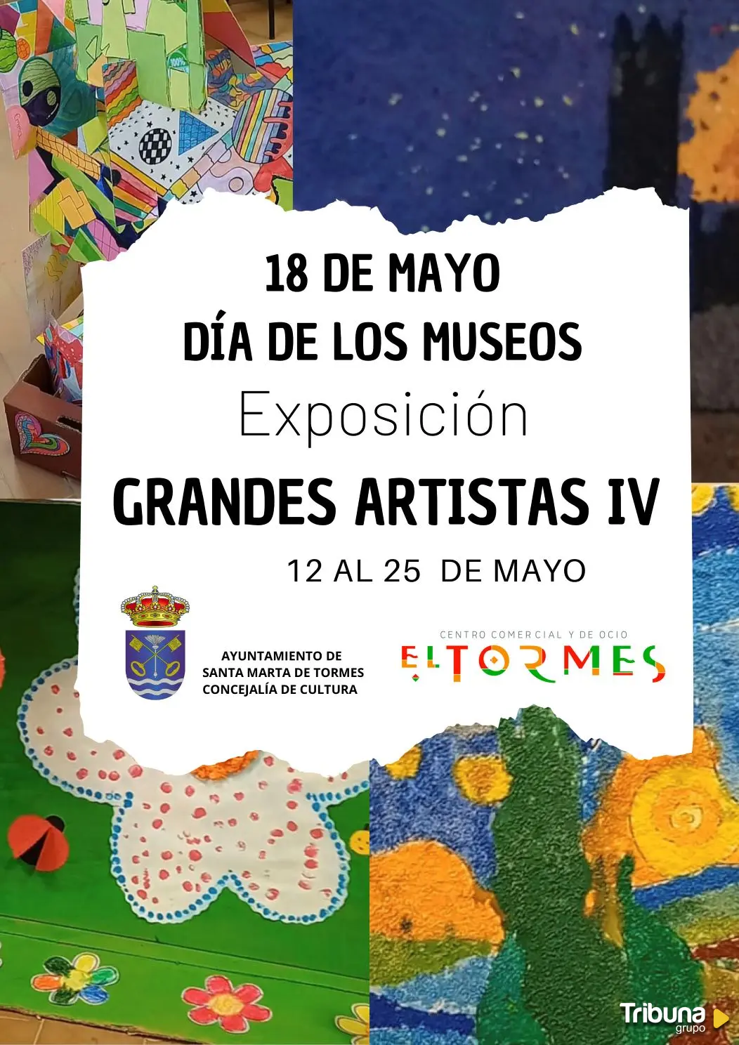 El Centro Comercial El Tormes acoge desde esta semana la exposición 'Grandes Artistas IV', una propuesta colectiva que pone en valor el talento artístico de alumnos y alumnas de varios centros educativos de Santa Marta de Tormes. La muestra, que permanecerá abierta al público hasta el 25 de mayo, forma parte de la programación organizada por la Concejalía de Cultura del Ayuntamiento de Santa Marta con motivo del Día Internacional de los Museos, que este año se celebra bajo el lema 'El futuro de los museos en comunidades en constante cambio'.
