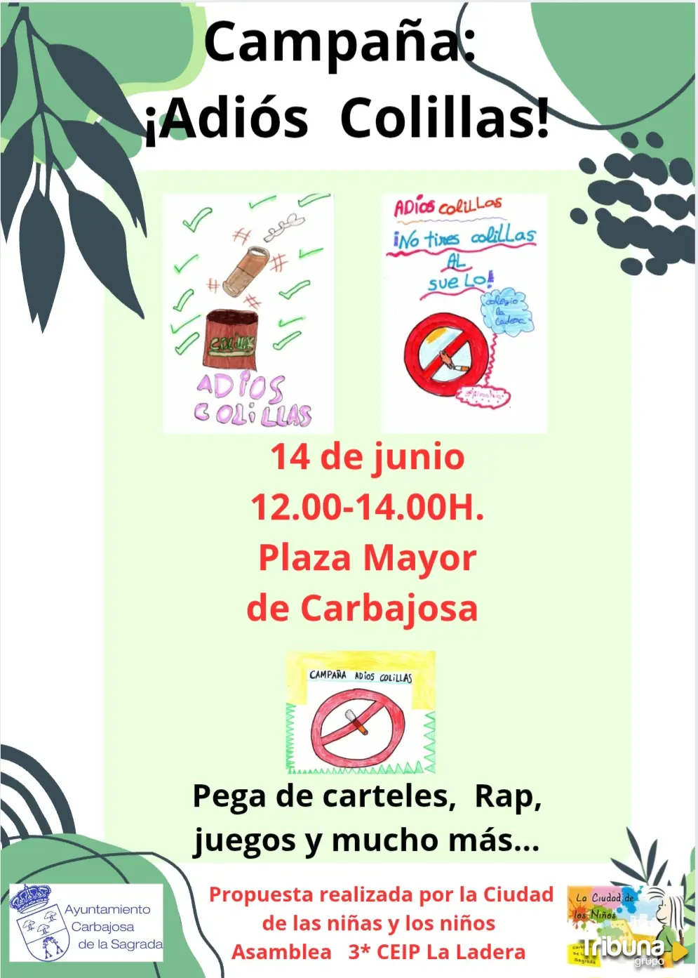 La Asamblea de 3º de Primaria del CEIP La Ladera de Carbajosa de la Sagrada, en colaboración con el programa municipal Ciudad de las Niñas y los Niños, ha lanzado la campaña 'Adiós Colillas', una iniciativa para concienciar a la ciudadanía sobre el grave impacto ambiental de las colillas de cigarro.