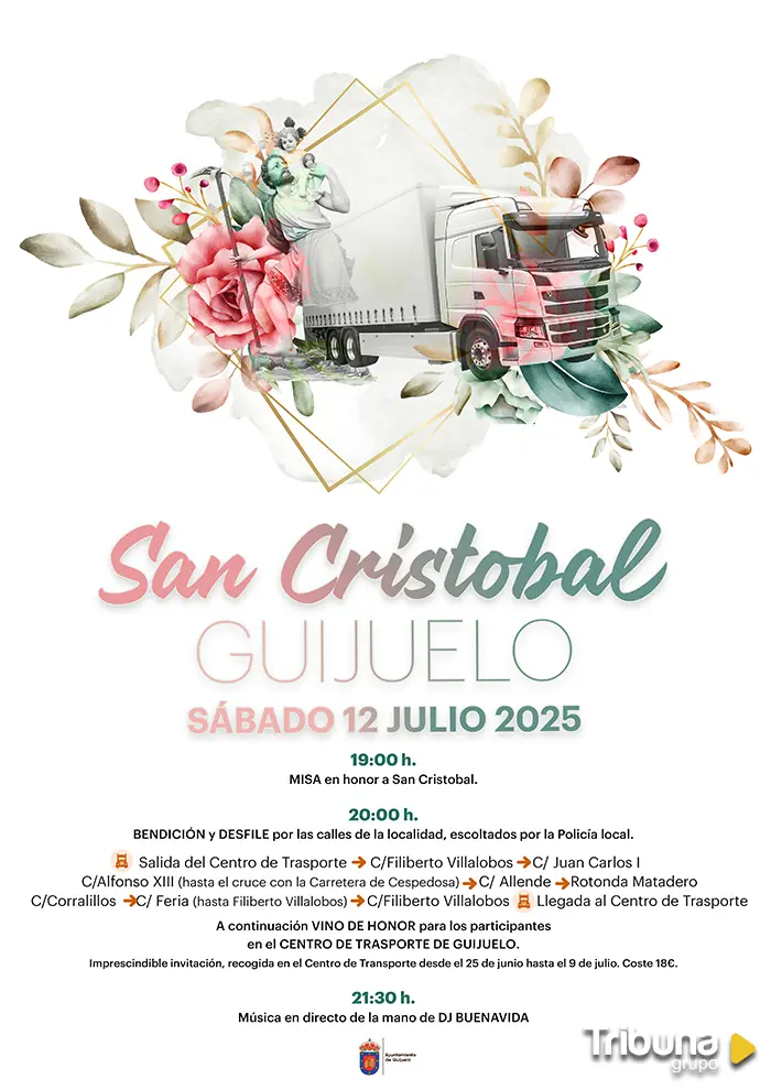 Por cuarto año consecutivo, Guijuelo rendirá homenaje a San Cristóbal, patrón de los conductores y viajeros, con una jornada festiva organizada por la Asociación de Transportistas, encabezada por Fernando Martínez, en colaboración con el Ayuntamiento de Guijuelo.