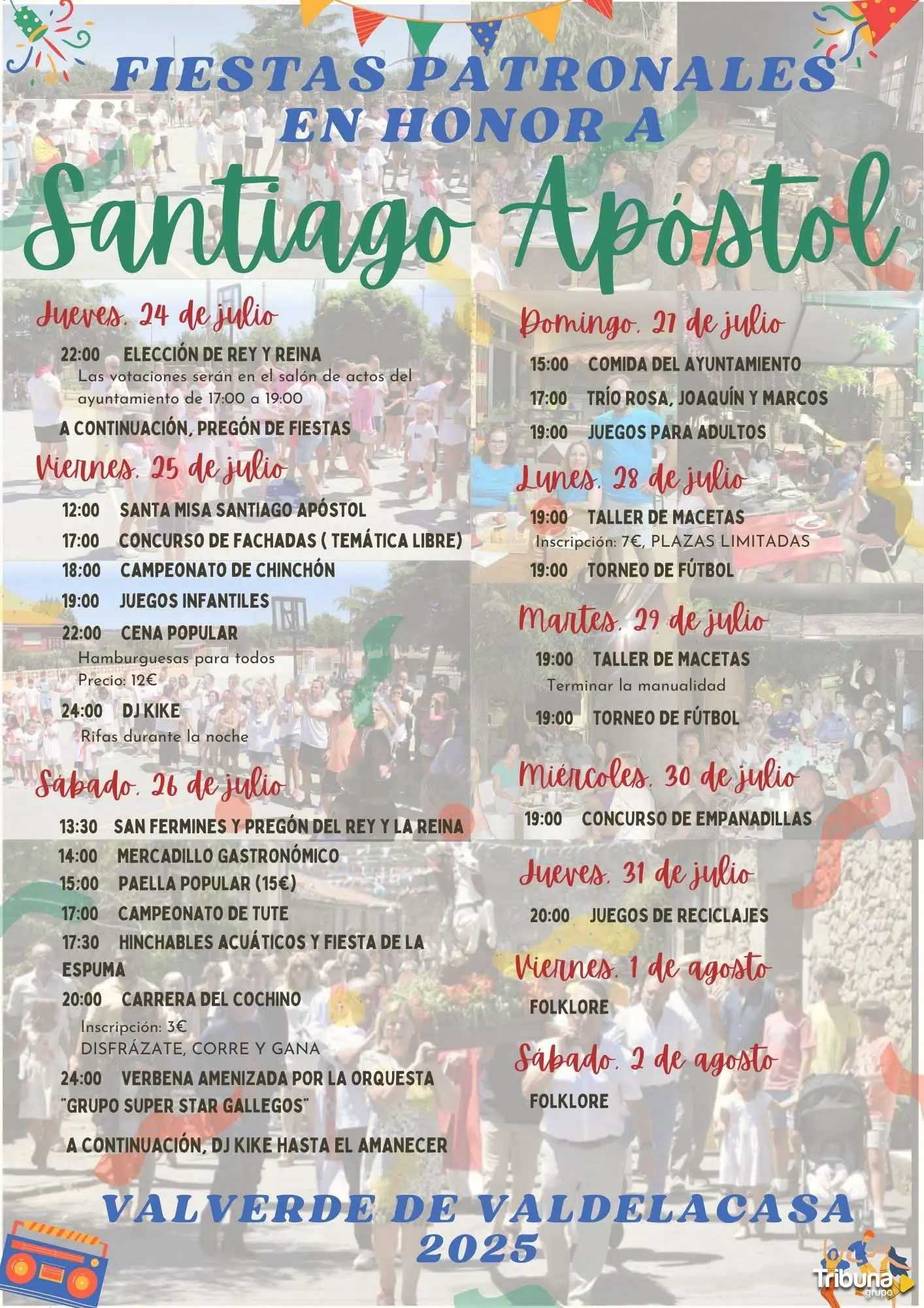 Aunque las actividades se prolongarán durante la semana, Valverde de Valdelacasa celebra este fin de semana sus fiestas patronales en honor a Santiago Apóstol. Y es que el grueso de la programación se concentra en estos días para honrar a su patrón.