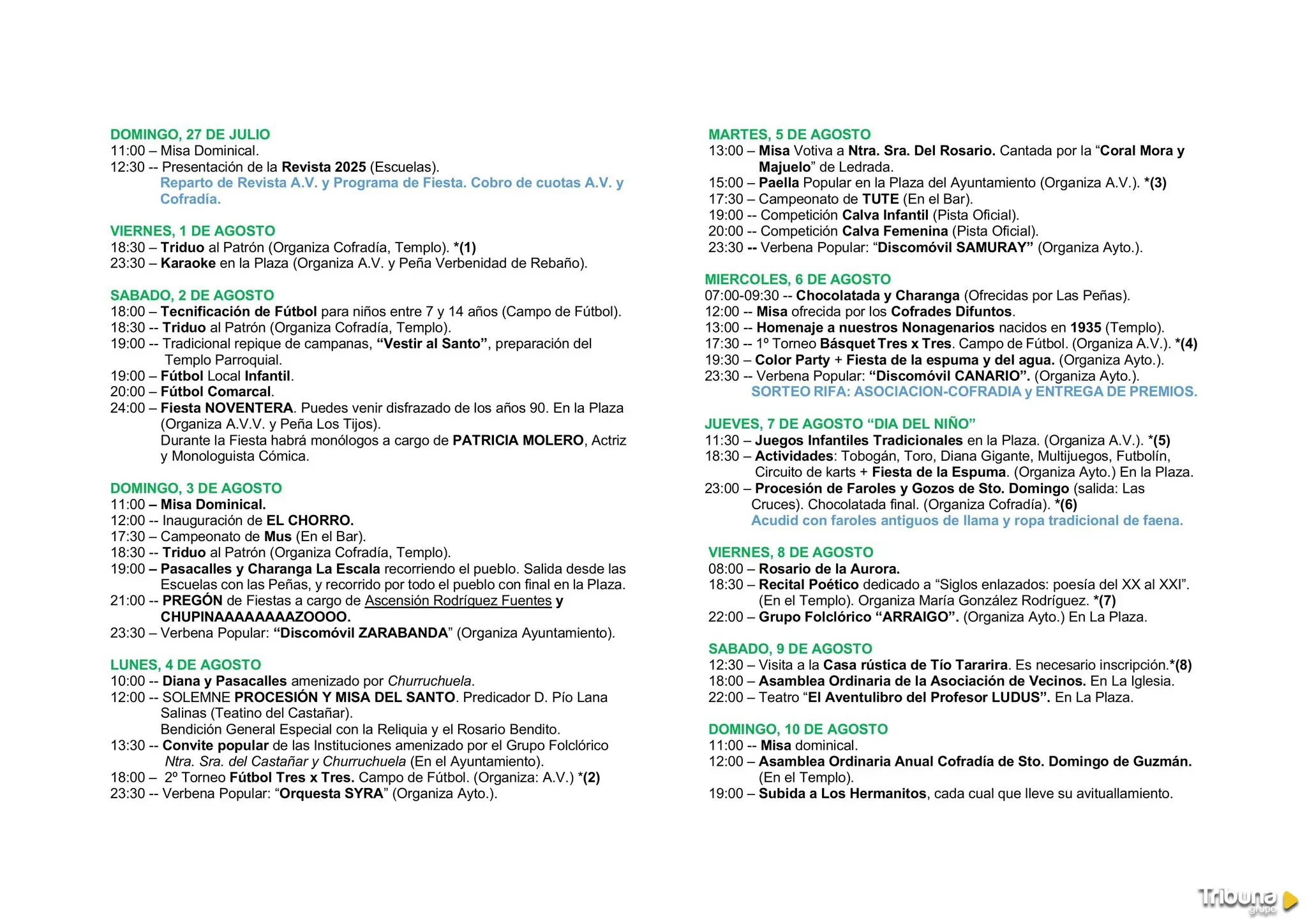 El municipio vivirá dos días festivos con campeonatos, verbenas, eucaristía, comida popular y juegos infantiles.