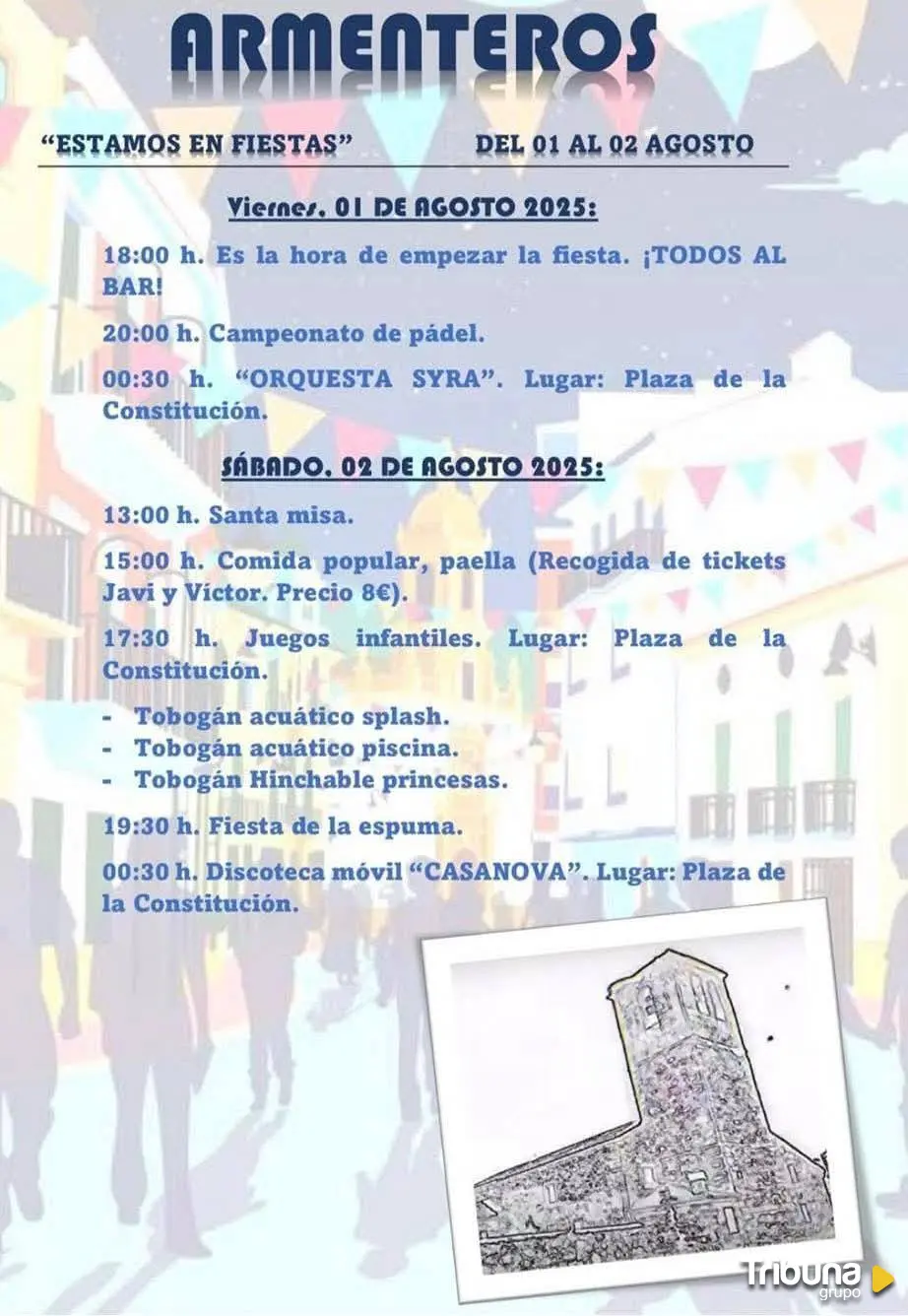 Con la llegada de agosto, el ambiente festivo se apodera de numerosos municipios de la provincia de Salamanca, que aprovechan el primer fin de semana del mes para celebrar sus fiestas patronales. Música, verbenas, toros, competiciones deportivas, actividades para niños y tradiciones populares llenarán calles y plazas en localidades que se preparan para recibir tanto a vecinos como a visitantes. Este primer fin de semana se presenta como una explosión de alegría, reencuentros y cultura popular que marca el inicio de uno de los momentos más esperados del verano rural.