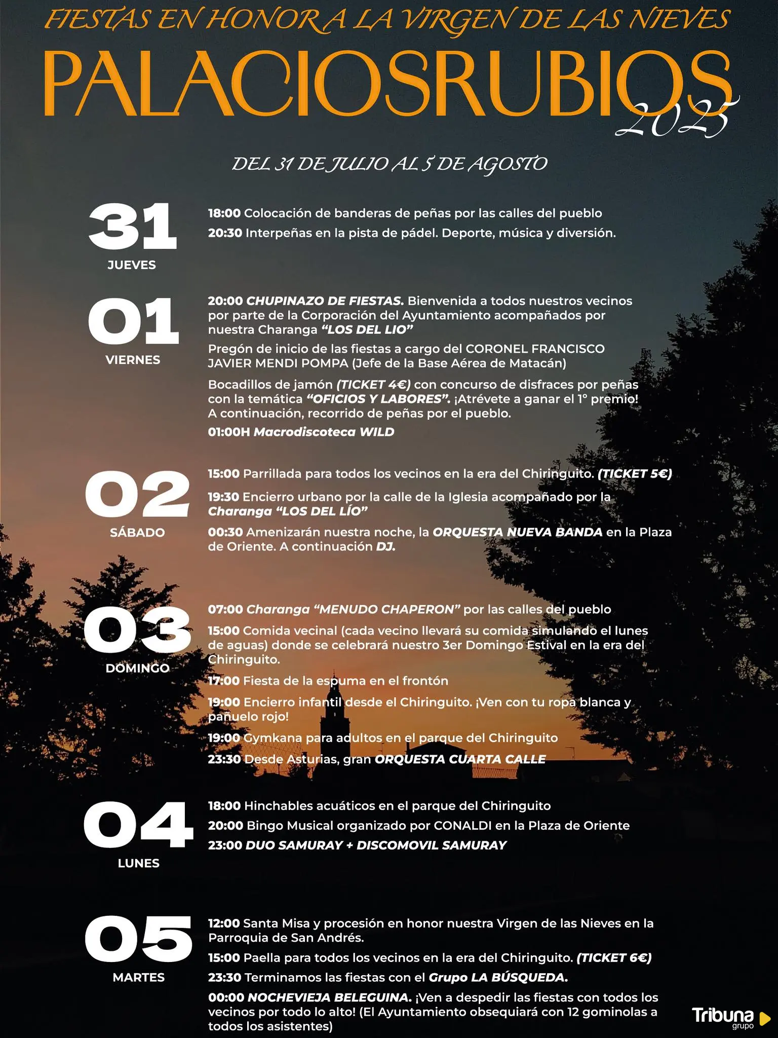 El municipio espera estos días para celebrar sus fiestas en honor a Nuestra Señora de las Nieves con un intenso programa de fiestas que se alargará hasta el próximo miércoles.