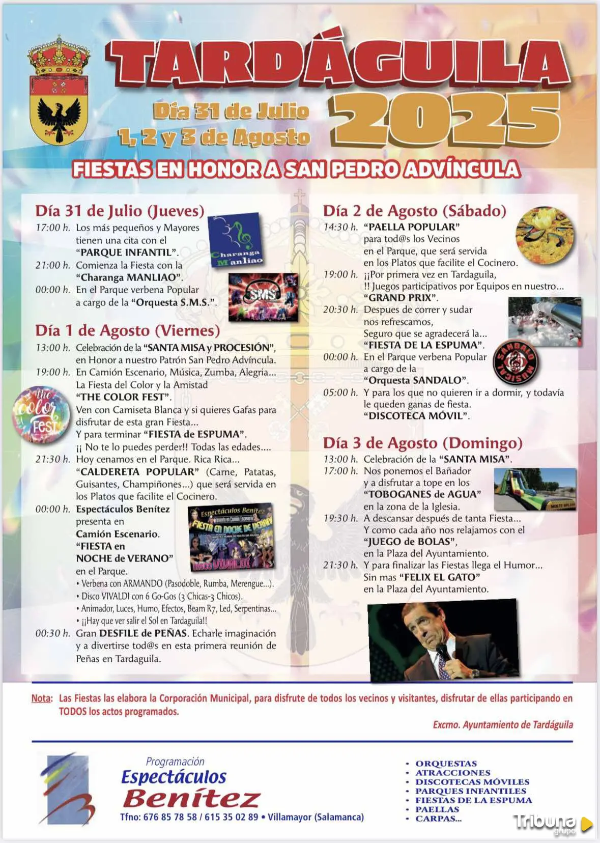 Con motivo de la festividad de San Pedro Advíncula, Tardáguila celebra cuatro días de fiesta con cerca de una veintena de actividades hasta el próximo domingo.
