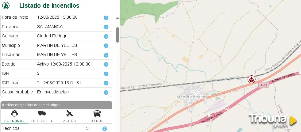 Un incendio forestal declarado este martes sobre las 13:30 horas en Martín de Yeltes, en la comarca salmantina de Ciudad Rodrigo, mantiene en alerta a vecinos y autoridades. El municipio, con menos de 387 habitantes, afronta un fuego de nivel 2, categoría que implica una amenaza grave para la población y bienes de naturaleza no forestal.