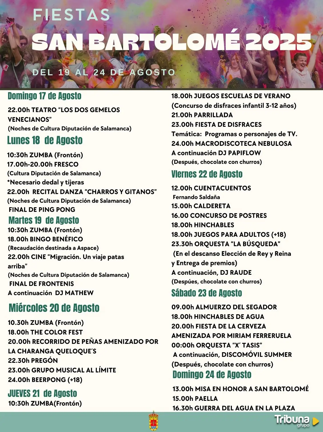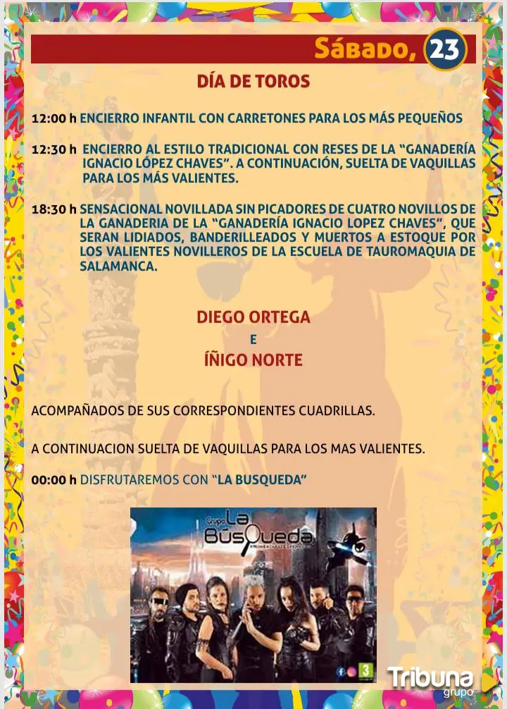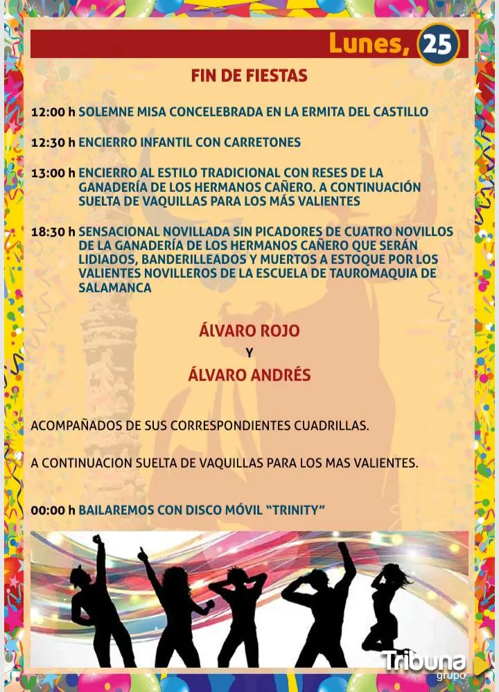La provincia de Salamanca vuelve a vestirse de fiesta este fin de semana con numerosas localidades celebrando sus patronos y tradiciones. Desde verbenas y encierros hasta procesiones y actividades culturales, los pueblos salmantinos han preparado completos programas para vecinos y visitantes, en unos días marcados por la música, la convivencia y el ambiente festivo.