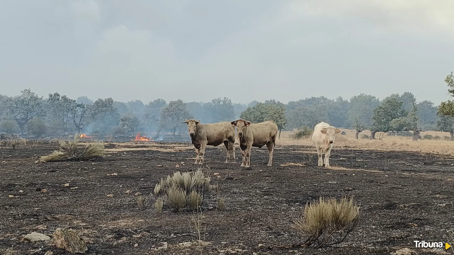 Temor por las personas que están trabajando en diferentes fincas en Cíperez para evitar que llegue el fuego mientras vecinos se acercan incluso con garrafas de agua para intentar llevar más agua a los que tratan de sofocar las llamas.