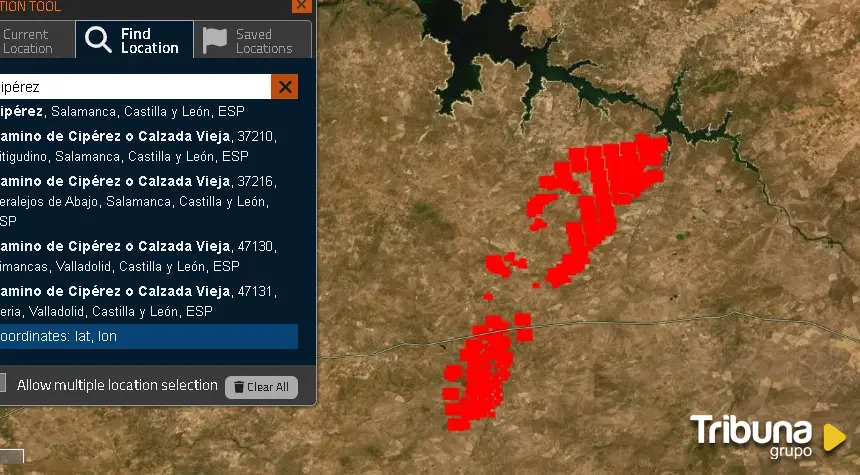 Estas imágenes permiten visualizar con precisión los focos de calor e incendios activos, mostrando no solo el de Cipérez, sino también otros como el registrado en El Payo, que comparte el mismo nivel de alerta.