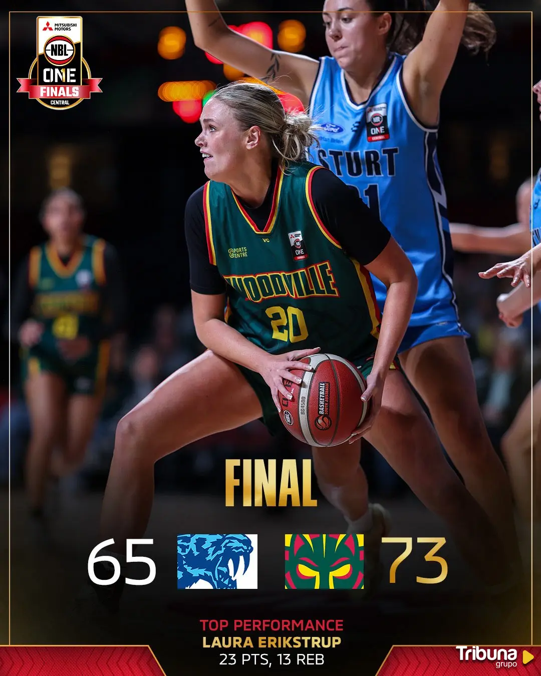 Campeona y con el título de MVP, así ha acabado Laura Erikstrup la final de la Conferencia Centro de la NBL1 que su equipo, Woodville Warriors, ha disputado frente a Sturt Sabres, que finalizó 65-73, a favor de los colores que defiende la nueva jugadora de Perfumerías Avenida.