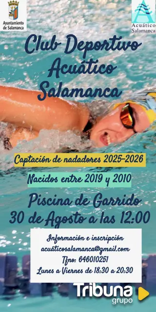 La cita está dirigida a los deportistas nacidos entre los años 2010 y 2019, por lo que esperan contar con un nutrido grupo de nuevos integrantes de diversas edades. Para más información e inscripción, los interesados pueden ponerse en contacto a través del 646010251 y el correo electrónico acuaticosalamanca@gmail.com.