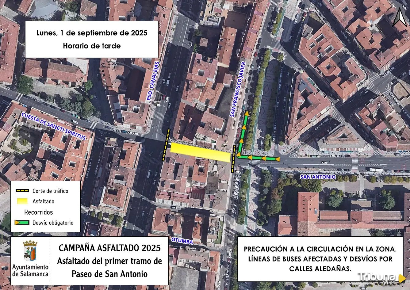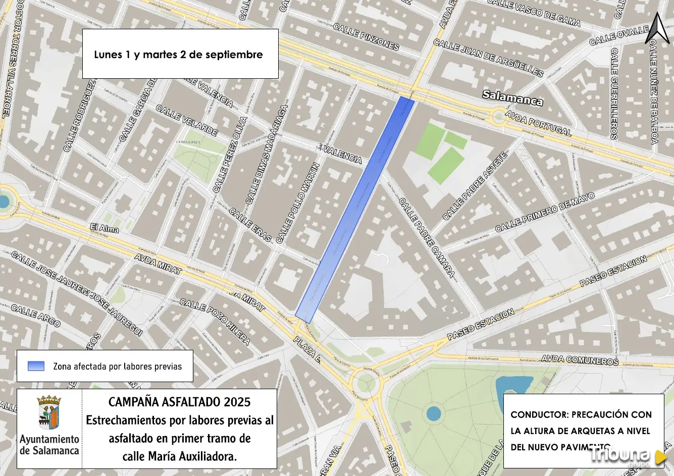 Dentro de la campaña de aslfaltado 2025 que acomete durante estos días el Ayuntamiento de Salamanca, el tráfico se verá afectado el lunes en distintos puntos de la ciudad.