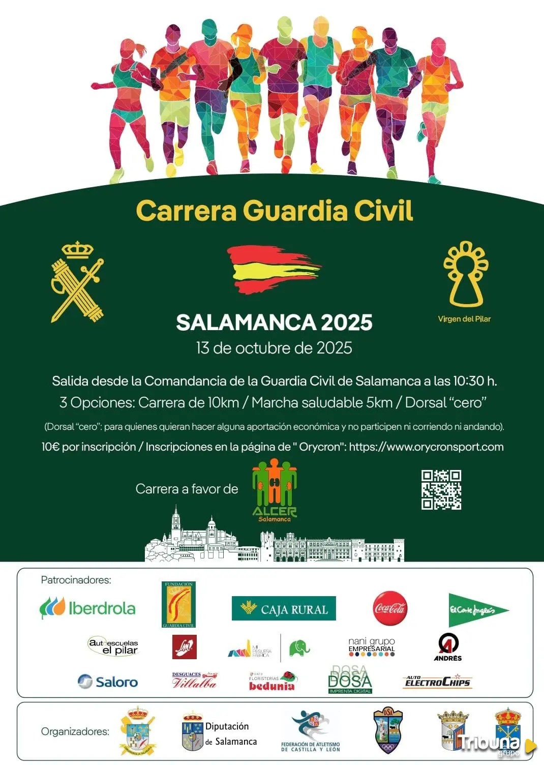 La prueba deportiva recorrerá las calles de Salamanca y Santa Marta de Tormes, con salida y meta en la Comandancia de la Guardia Civil de Salamanca y contará con tres modalidades de participación. Por un lado se disputará una carrera de 10 kilómetros y una marcha saludable de cinco kilómetros y, por otro, se ha abierto un dorsal cero para quienes deseen colaborar con una aportación económica sin participar en la prueba.