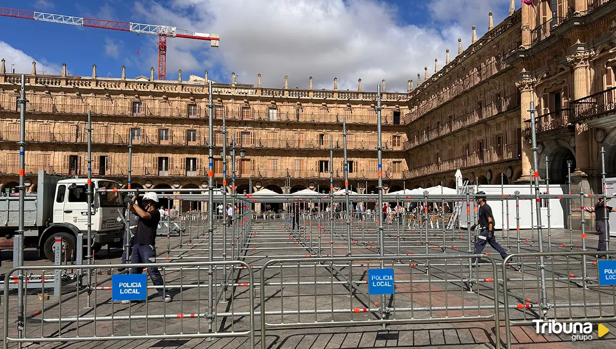 Cuenta atrás para las Ferias y Fiestas de Salamanca en honor a la patrona, la Virgen de la Vega. La Plaza Mayor también ha comenzado a transformarse este lunes con el montaje del escenario en el que se celebrarán los conciertos de la programación festiva.