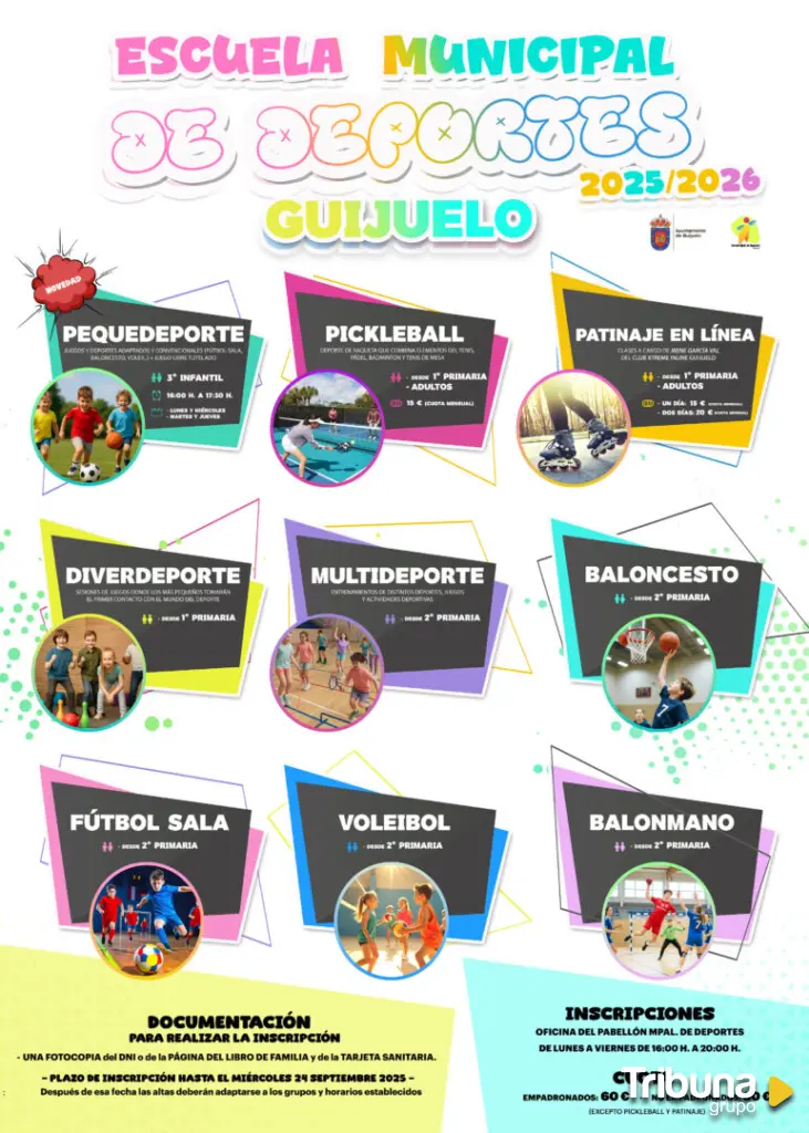 La Escuela Municipal de Deportes ofertará sesiones de pickleball, patinaje en línea, diverdeporte, multideporte, baloncesto, fútbol sala, voleibol y balonmano. Diferentes deportes para los que el precio será una cuota de 60 euros para empadronados, mientras que los no empadronados abonarán 80 euros en cada una de las disciplinas, excepto en pickleball y patinaje.