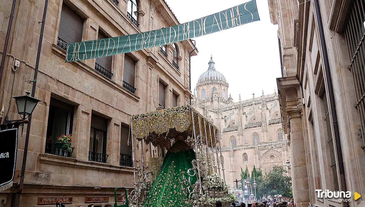 Salamanca ha vivido este 27 de septiembre un acontecimiento único, un día que ya forma parte de la memoria colectiva de la ciudad y, sobre todo, las personas devotas. Nuestra Señora de la Esperanza, la imagen dominicana que despierta tantas emociones y plegarias, salió en procesión extraordinaria desde la Catedral Nueva hasta el convento de San Esteban, en el marco del Año Jubilar de la Esperanza.