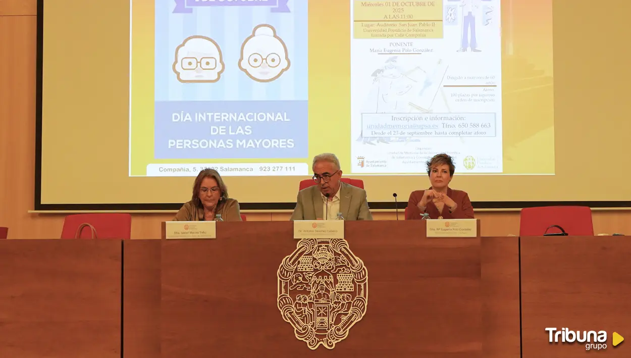 Por otra parte, la Unidad de Memoria de la Universidad Pontificia de Salamanca y la Concejalía de Mayores del Ayuntamiento de Salamanca han conmemorado este día con la conferencia 'Soy mayor. ¿Me empodero o muero?', impartida por la directora del Servicio de Voluntariado, María Eugenia Polo. Durante la ponencia han estado presentes la concejala de Mayores del Ayuntamiento de Salamanca, María Isabel Macías Tello, y el director de la Unidad de Memoria, Antonio Sánchez Cabaco.