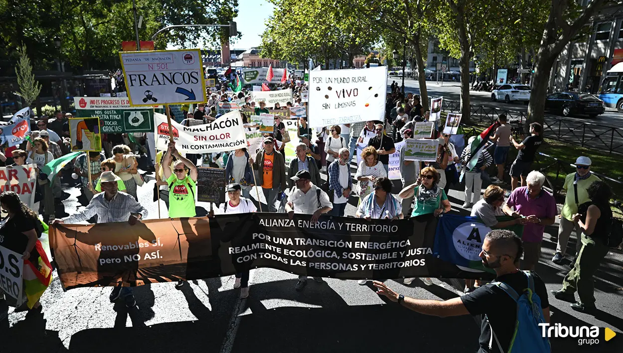Asociaciones y colectivos de la provincia de Salamanca han participado este domingo en Madrid en la protesta para denunciar el abandono del medio rural, "vaciado" de servicios públicos y víctima de numerosas "agresiones" en forma de macroproyectos de energías renovables que amenazan sus recursos naturales y el modo de vida de sus vecinos.