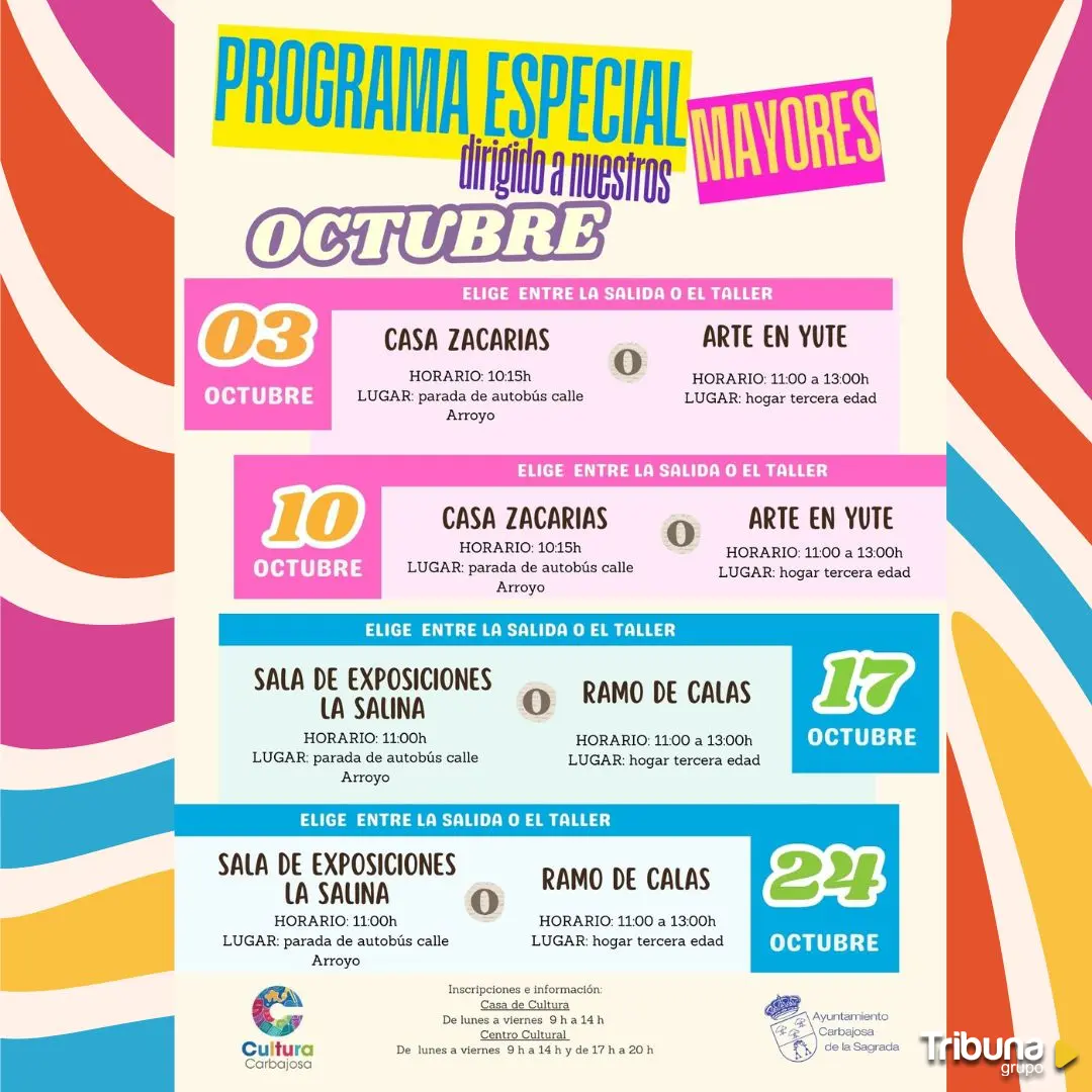 Con la llegada del mes de octubre han comenzado en Carbajosa de la Sagrada las actividades de los programas especiales de este mes, organizados por el Ayuntamiento de la localidad para los mayores y para los niños de 6 a 11 años. +