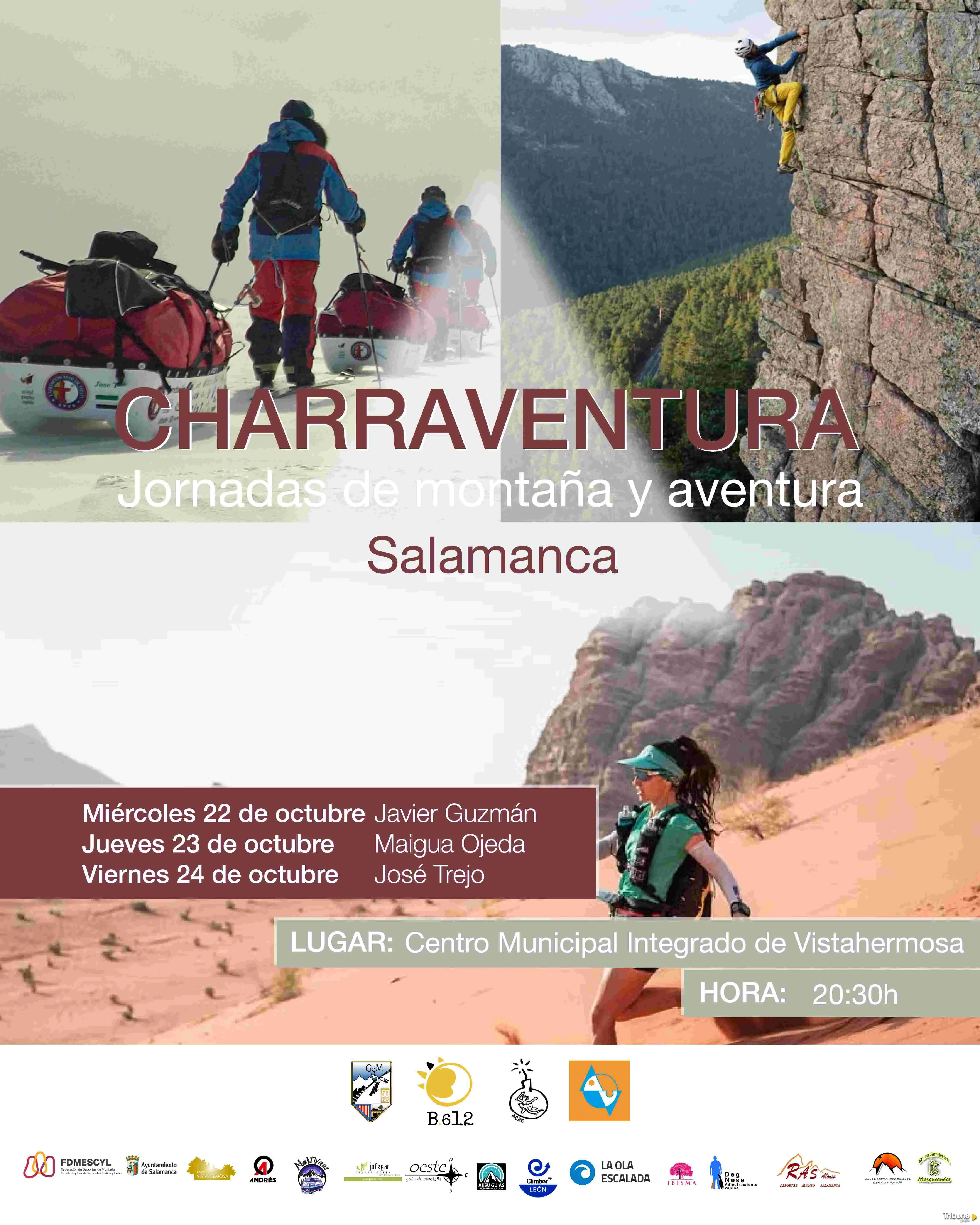 El Grupo Salmantino de Montaña (GSM), junto a los clubes Salandar, B612 y Acción Charra de Escalada (ACHE) organizan los días 22, 23 y 24 de octubre la 11ª edición de las jornadas de montaña y aventura CharrAventura. Dichas jornadas constan de varias ponencias con deportistas de élite vinculados con disciplinas como la escalada, la exploración o las carreras de ultrarresistencia.