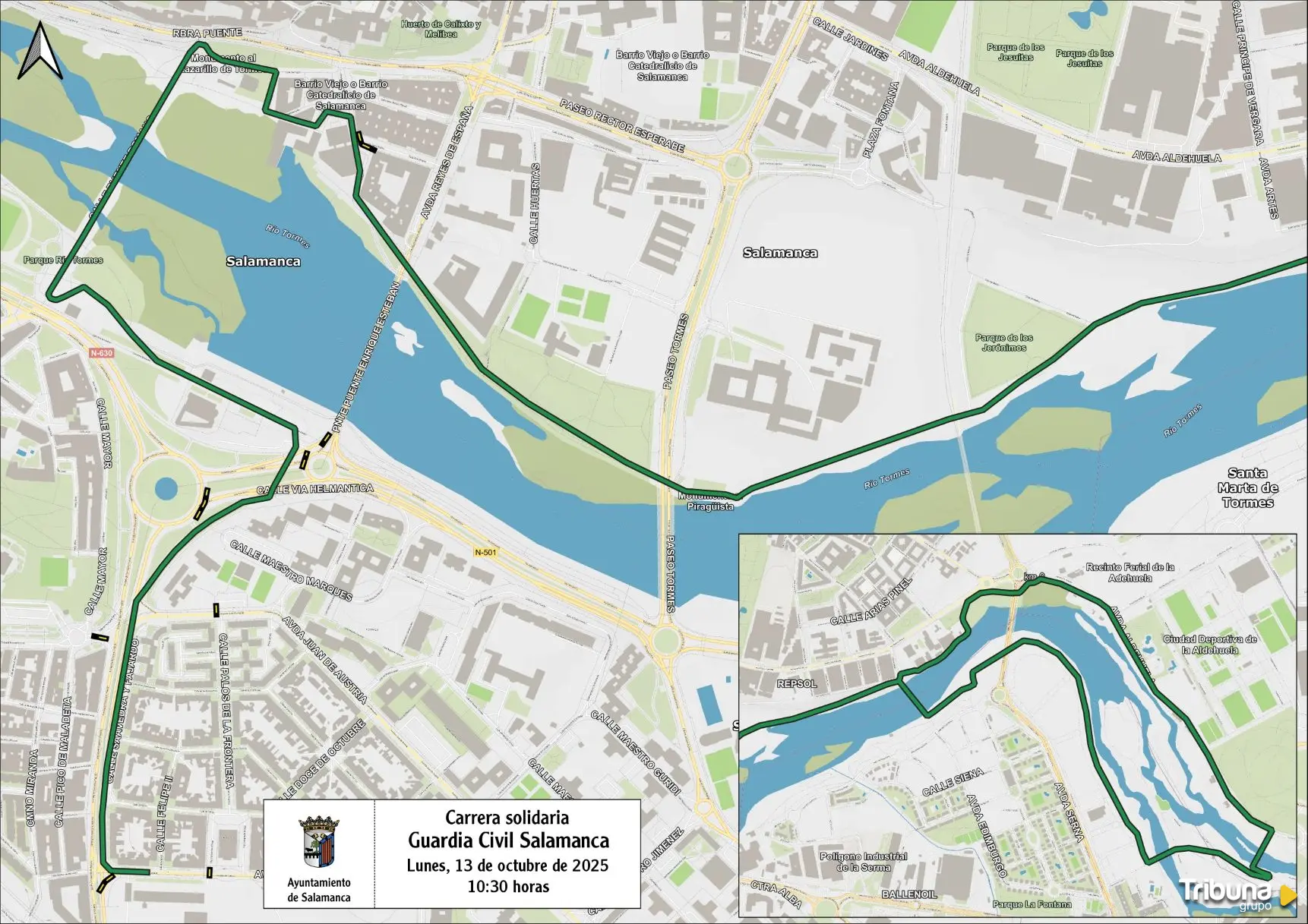 La celebración de la III Carrera Solidaria Guardia Civil de Salamanca, que tendrá lugar este lunes 13 de octubre, provocará diferentes cortes y desvíos de tráfico en varias calles de la ciudad a lo largo de la mañana.