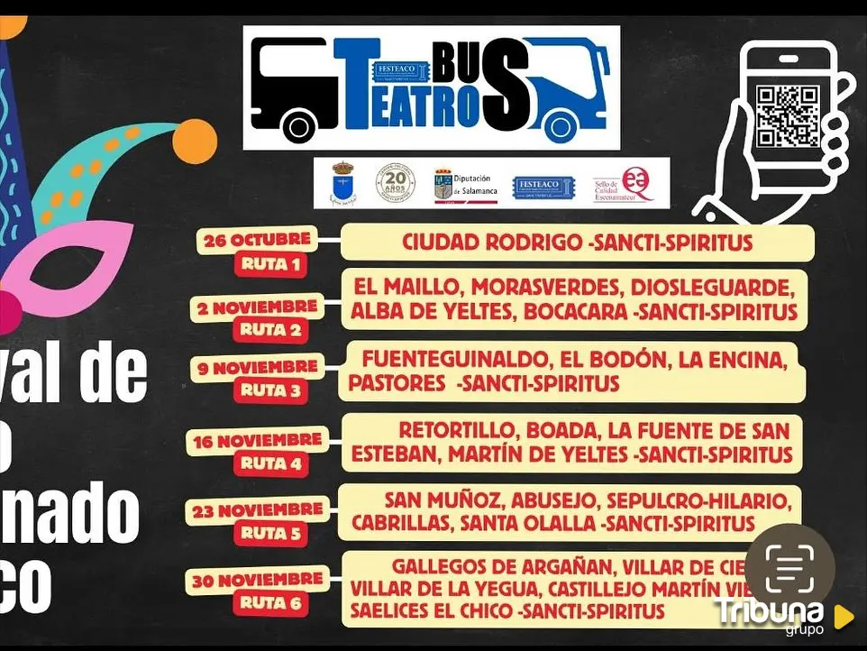 Con el objetivo de facilitar la asistencia desde todos los pueblos de la zona, se han habilitado seis rutas de autobuses desde municipios de la comarca como Ciudad Rodrigo, El Bodón, El Maíllo, Morasverdes, Alba de Yeltes, Fuenteguinaldo, Retortillo o La Fuente de San Esteban. Una iniciativa que "ha generado una gran demanda entre los amantes del teatro", han asegurado desde la institución provincial.