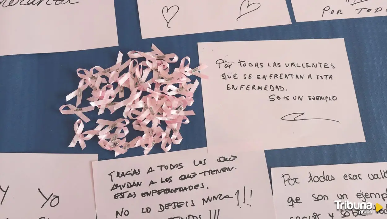 Los asistentes han recibido lazos y claveles rosas, y además han podido escribir frases motivadoras, que se han colocado en el hall, junto a un gran lazo rosa.
