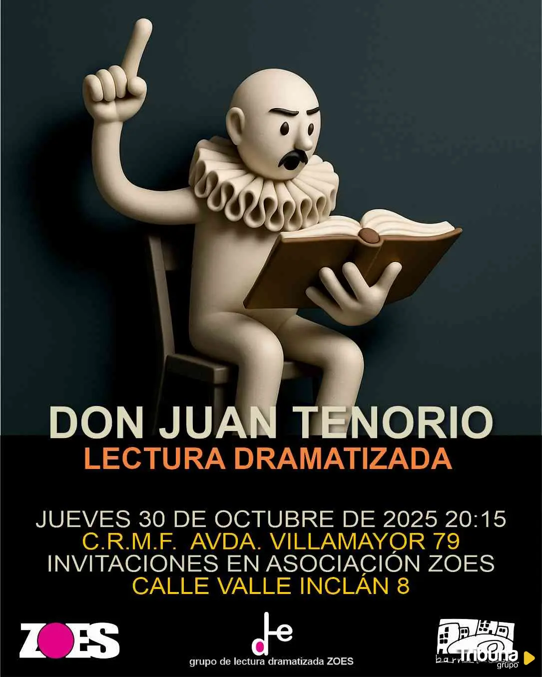 Miembros de ZOES interpretan este jueves una lectura dramatizada de 'Don Juan Tenorio', la inmortal obra de José Zorrilla. La representación comenzará a las 20:15 en el salón de actos del Centro de Recuperación de personas con discapacidad física (CRMF), en la avenida de Villamayor, 79.