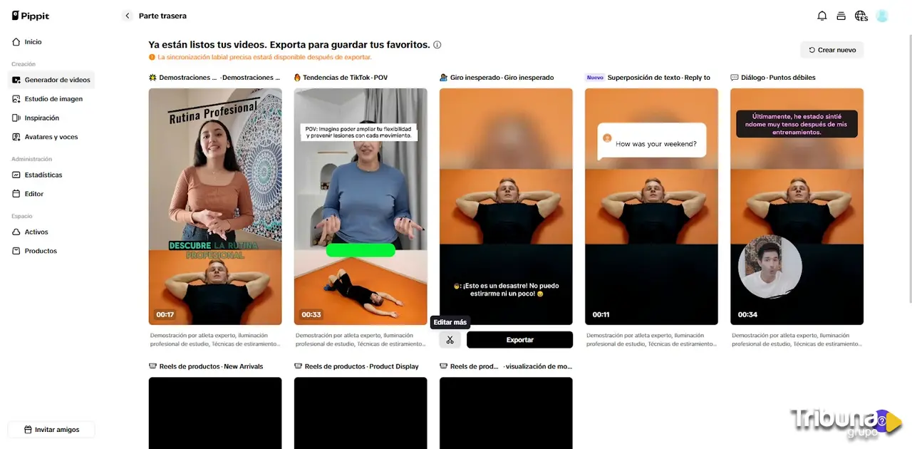 Tendrás entre 4 y 5 borradores. Selecciona uno para continuar editando haciendo clic en el botón "Edit more" y acceder a la interfaz de edición.