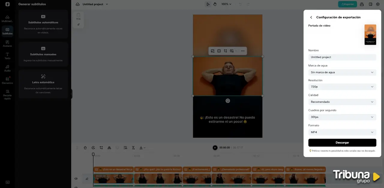 Una vez generado, personaliza los subtítulos, añade texto, ajusta tamaño, color y alineación. Aplica filtros, efectos, música de fondo o elimina fondos.