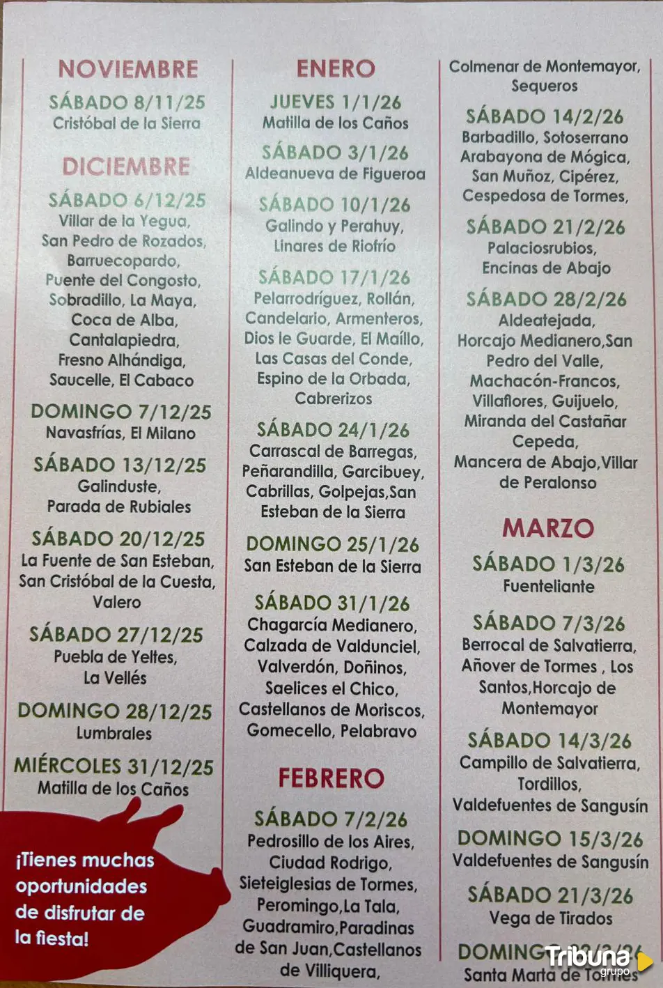 Este circuito de matanzas arrancará el próximo sábado, 8 de noviembre, en Cristóbal de la Sierra y se cerrará el domingo 22 de marzo en Santa Marta de Tormes.