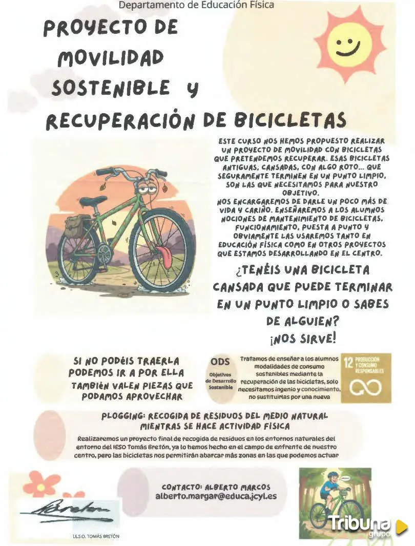 El Ayuntamiento de Villamayor y el IES Tomás Bretón han unido fuerzas para desarrollar el Proyecto de Movilidad Sostenible y Recuperación de Bicicletas, una propuesta educativa y medioambiental que pretende fomentar hábitos de consumo responsable, promover la economía circular y fortalecer el compromiso de los jóvenes con la sostenibilidad.