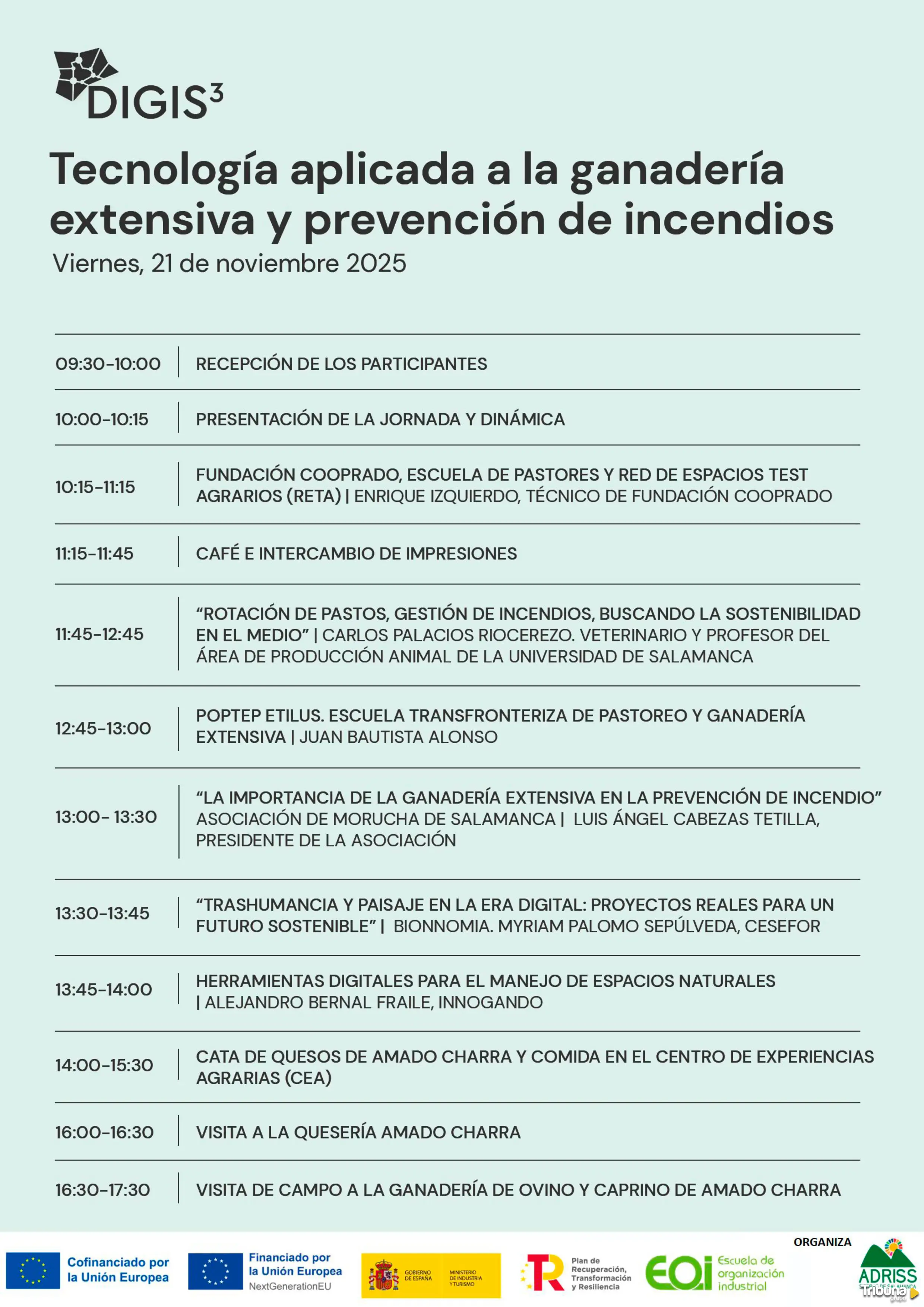 ADRISS, en el marco del proyecto DIGIS 3 y en colaboración con el Ayuntamiento de Villanueva del Conde, celebrará el próximo 21 de noviembre una jornada en el Centro de Experimentación Agrario (CEA) destinada a abordar el papel clave del pastoreo y la ganadería extensiva en la gestión del paisaje de la Sierra de Francia y en la prevención de incendios forestales. El encuentro también analizará cómo la digitalización puede contribuir a mejorar estos procesos tradicionales.