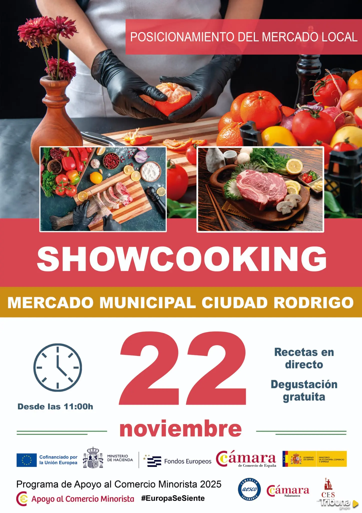 El Mercado Municipal de Abastos de Ciudad Rodrigo será el escenario este sábado, 22 de noviembre, de un showcooking en el que varios chefs profesionales elaborarán en directo distintas recetas utilizando productos frescos adquiridos en los propios puestos del mercado. La actividad comenzará a las 11:00 horas y estará abierta a todo el público.