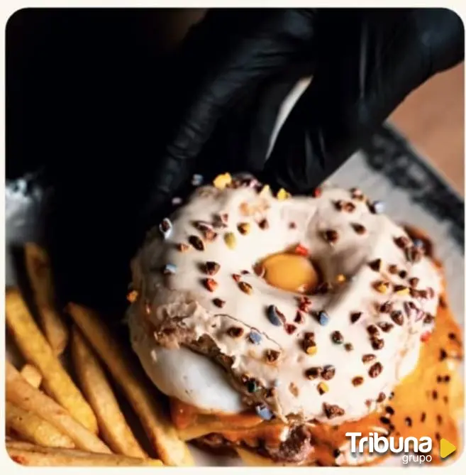 La 'Canijo Party' es una hamburguesa con dos smash de vaca, queso cremoso Monterey Jack y salsa Emmy, coronada con un huevo campero y con pan cubierto de chocolate blanco y lacasitos para conseguir, según explican en sus redes sociales, "un sabor dulce-salado".
